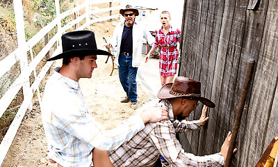 Mischievous blonde chick Tyler gives head to bisexual dudes
