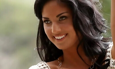Sexy dark haired Michelle Wittenberg has an outdoor photosession