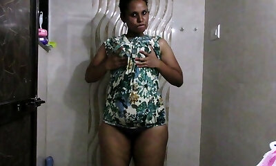 Big-titted Dark-haired Butterball Shows Her Huge Naturals While Posing On Camera In Spectacular Solo