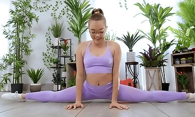 Sexy honey enjoys stretching her pussy while doing acrobatic moves