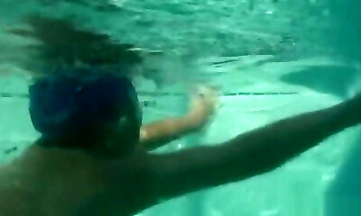 Bright gal can hold her breath long while having fun naked in the pool