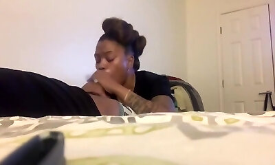 Crazy tatted ebony nympho exposed her really huge booty and big tits