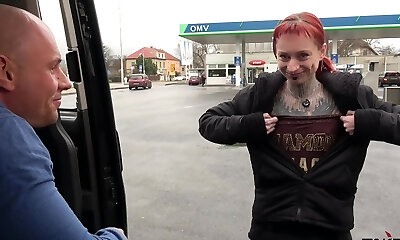 Totally Pierced and Tatted Wierd Creature Rock the Cock in Driving Camper