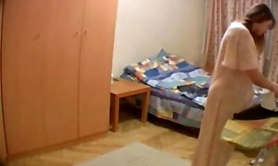 Lewd cam mega-slut is showing off her private parts with her neighbor in the apartment