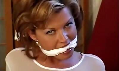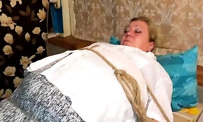 Tied up and naughty, the buxomy housewife gets in good graces of her captor