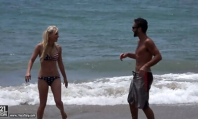 Fuckbox pleasuring on the public beach with flirtatious Sapphira