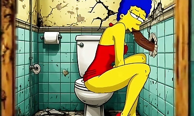 The Simpsons Porn Parody: Stunning Cuckold Wife Marge Lets a Black Dude Fuck Her In The Public Toilet