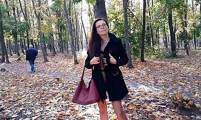 Walking NO Underpants in Pantyhose #PUBLIC Autumn Park
