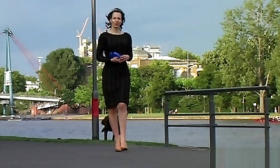 Hot blonde super-bitch Veronica pleases herself with fingering outdoors