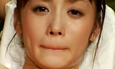 Busty Asian girl in bondage gets finger-banged and dildoed
