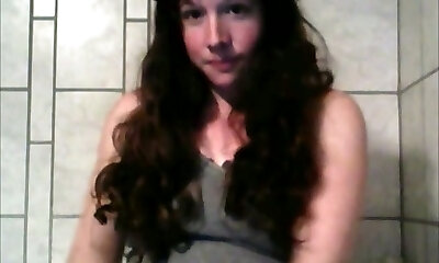 Long haired black head with gross saggy pale mammories was masturbating on webcam
