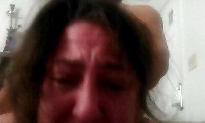 Ugly looking long haired wrinkled mature breezy works on strong manmeat